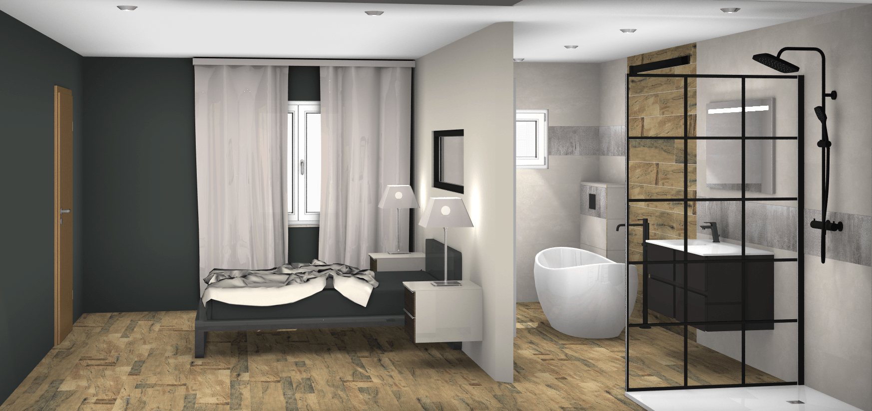 ➤ Retour au bureau, recherche de la meilleure implantation et proposition des matériaux carrelages, sanitaires, appareillage électrique, mobilier, peinture, papier peint avec élaboration de plans 2D et 3D.
